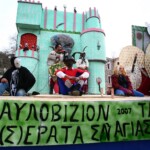 Στα χρόνια της μεταπολίτευσης λόγω της έντονης πολιτικοποίησης της νεολαίας και του λαού ανθεί η πολιτική σάτιρα.